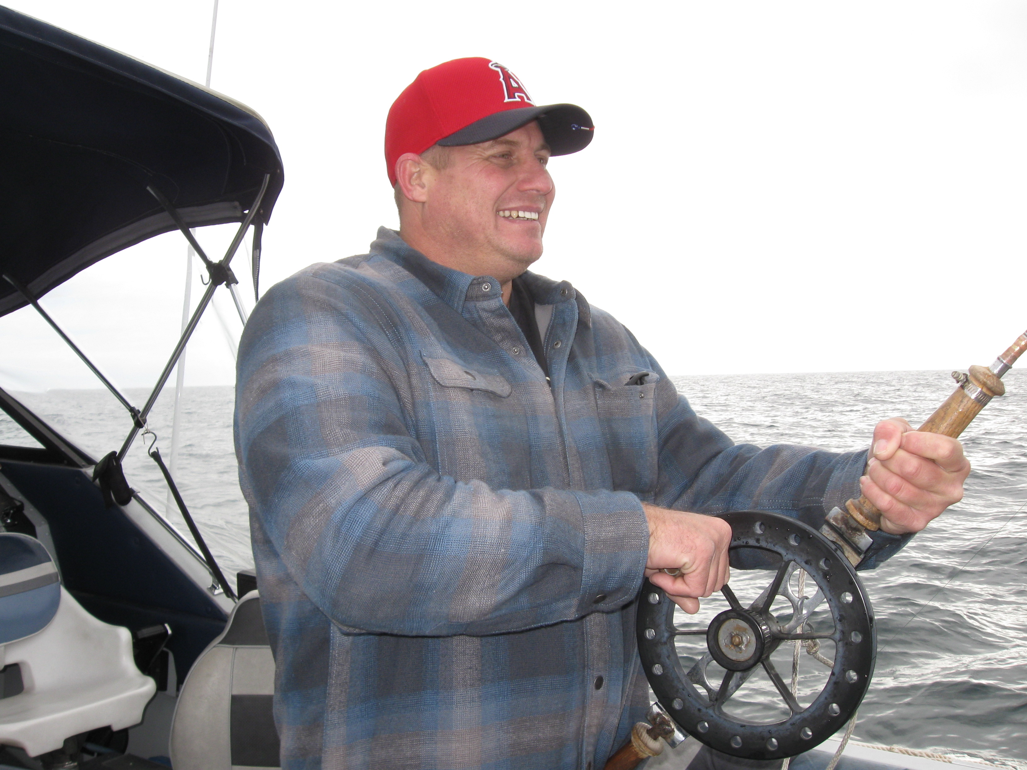 21 Aug The fog was like pea soup when my guest John Wells and I left, but it couldn't have been calmer when we set lines. After about 40 minutes, the port rigger produced a single line double and we missed one right behind the boat on the other rigger. Suddenly, we had 3 bats flying around and into and out of the boat, apparently lost in the fog. The action remained fairly steady and when we wrapped it up with nine Lakers, we notice that two of the bats were snuggled in a plastic wrap and the other was on the floor. We tried not to disturb them and as we pulled into the marina, we gave them a nudge and all three flew off on their own. We were quite pleased about that. Most of the Lakers were still deep, 180' to 220'. The fog was just starting to lift when we came in.